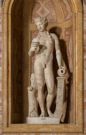 Datazione: II secolo d.C. • Misure: altezza senza plinto m 1,72; testa m 0,24 • Materia / Tecnica: marmo a grossi cristalli